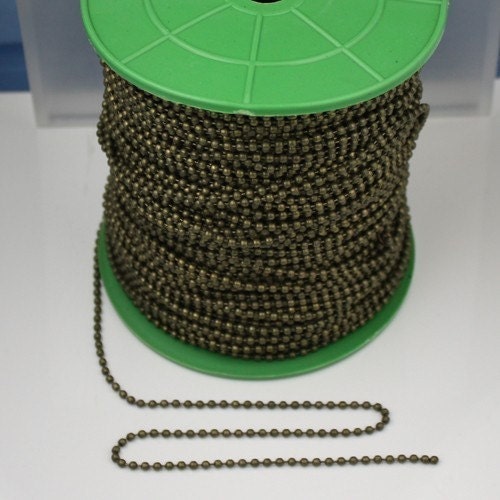 Antique Bronze Chain, Bulk Chain, 100 ft spool of Antique Brass Dainty Delicate curb ball chain - 1.3mm soldered link - 1.3SAT