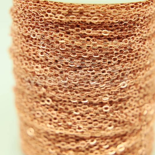 ATC Anti Tarnishing Coated Bright Copper Plated Flat Cable Chain - 3/10/32/50/100 Feet - 2.4x1.7mm SOLDER Link - Tarnish Protected- ATC2417F