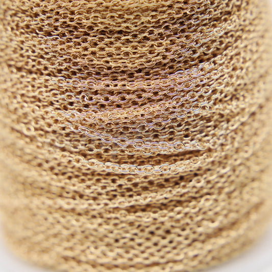 ATC Anti-Tarnishing Coating 24K Deep Gold Plated Cable Chain bulk, 3/10/32/50/100/300 Feet of SOLDERED Link - 2.0x1.4mm Links - ATC2014