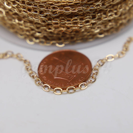 ATC Anti-Tarnishing Coating 24K Deep Gold Plated Flat Cable Chain bulk, 3/10/32/50 Feet of UNSOLDERED Link - 3x2.2mm Unsoldered - ATC322