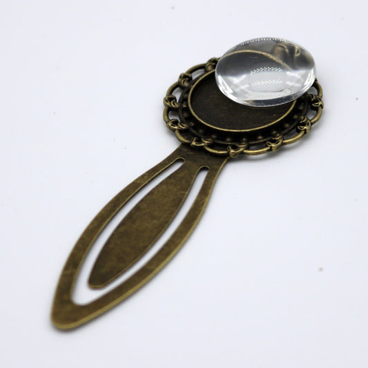 Bookmark with 20mm GLASS Magnifying Domes Cabochon - 5 sets 10 pcs - 80mmx31mm Antique Brass - S007 - We ship from California USA
