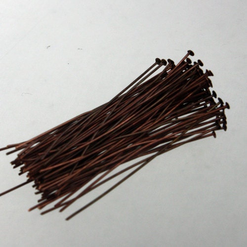 Bulk Package 300 Pcs Antique Copper FLAT headpins Head Pins T Pins - 2 inch (50mm) 22Gauge 22G - TPIN-22G-50