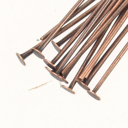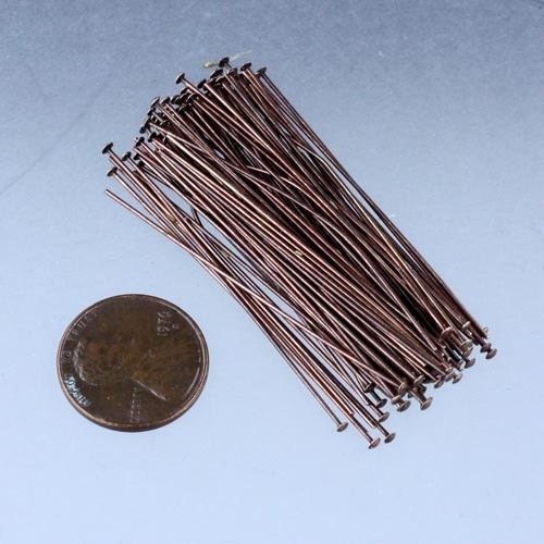 Bulk/FingerPick 100 Pcs Antique Copper Headpin - 2 Inch 22 Gauge 22G - Copper Flat Round Head Headpin Head pins TPin - TPIN-22G-50