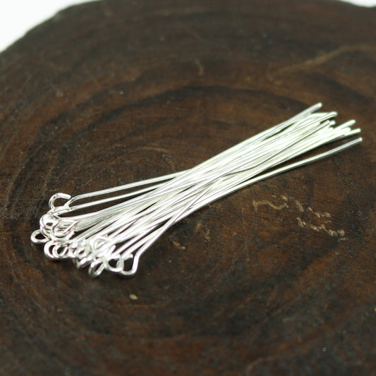 Bulk/FingerPick 100 Pcs Silver Plated Eyepins Eye Pins Headpins - 2 inch (50mm) 21 Gauge 21G - 9PIN-21G-50