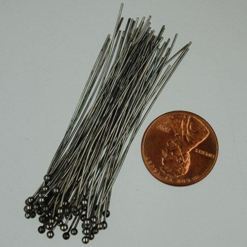Bulk/FingerPick 100 pcs Gunmetal Ball headpins Head Pins - 2 inches (50mm), 24 Gauge 24G 1.8mm Hard Body - BPIN-24G-50