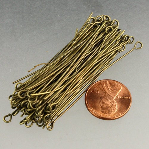 Bulk/FingerPick 100 Pcs Antiqued Brass Eyepins Bronze Eye Pins Eye Headpins - 2 inch (50mm) 21 Gauge 21G - 9PIN-21G-50