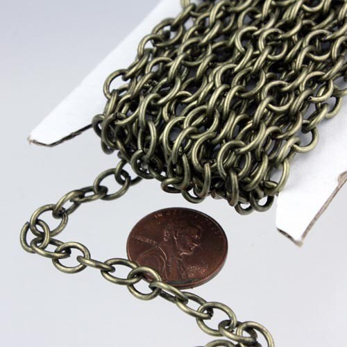 Chunky Fashion Chain 10 ft of Antiqued Brass Big Heavy Cable chain - 7.8x6.3mm 1.2mm unsoldered links - 7863CA
