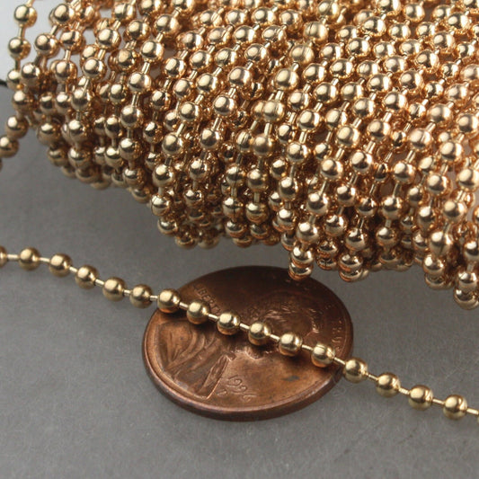 Champagne Gold Chain Bulk, 32 ft. spool of ROUND BALL chain - 2.4mm ball size - w/ FREE 20pcs Connectors (Insert) - 24BALL