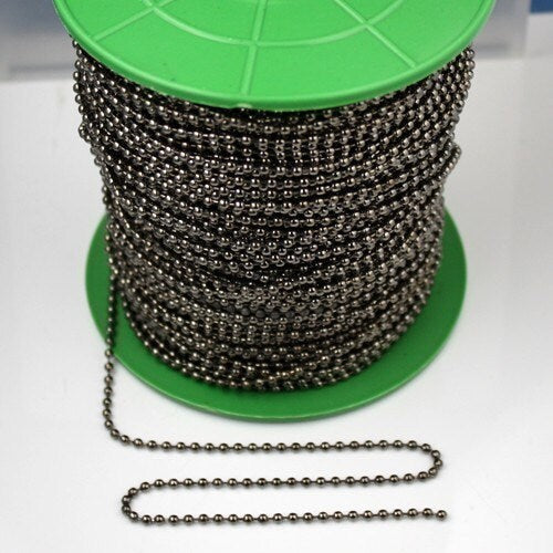 Gunmetal Chain Ball Bulk Chain, 32 ft. of ROUND BALL chain - 2.4mm ball size - w/ FREE 20 pcs Connectors (Insert) - 24BALL