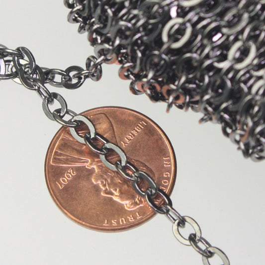 LIMITED 32 Ft of Gunmetal Flat Cable Sturdy SOLDERED Heavy Chunky Chain 4.2x5.2mm 22Gauge - 4252F