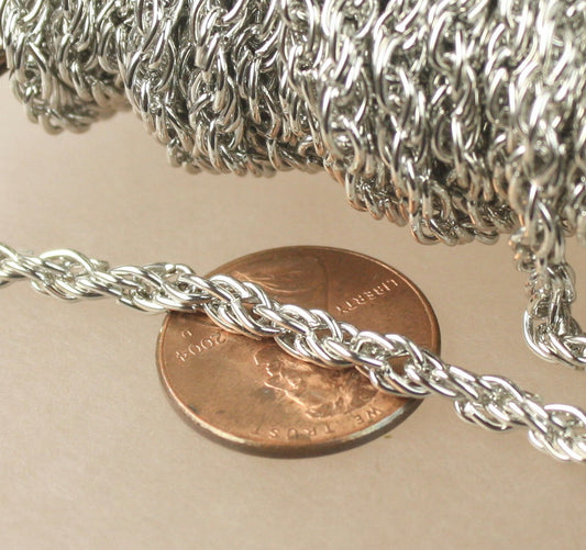 New Sale Price 50 ft of Rhodium Plated Twist Hammered Fashion Curb Chain - 5.2x3.8mm 22G Unsordered Link - Ship from California USA