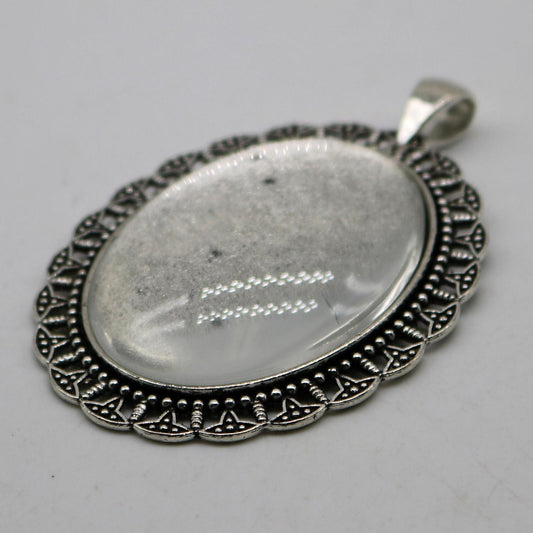 Pendant BEZELS with GLASS Magnifying OVAL Domes Cabochon - 5 sets 10 pcs - for 30x40mm Cabochon - Antique Silver Bezel and Glass Cabochon
