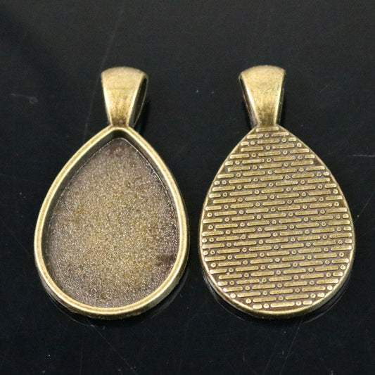 Pendant BEZELS without GLASS Magnifying Tear Drop Domes Cabochon - 5 pcs - 18x25mm 3/4x1 inch Antique Brass Bezel and Glass Cabochon