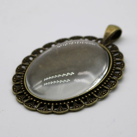Pendant BEZELS with GLASS Magnifying OVAL Domes Cabochon - 5 sets 10 pcs - for 30x40mm Cabochon - Antique Brass Bezel and Glass Cabochon