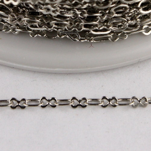 10 ft spool of Rhodium Plated on Brass SOLDERED Tiny Figure 8 Connector Chain - 3.0x1.9mm links - 8SMALL