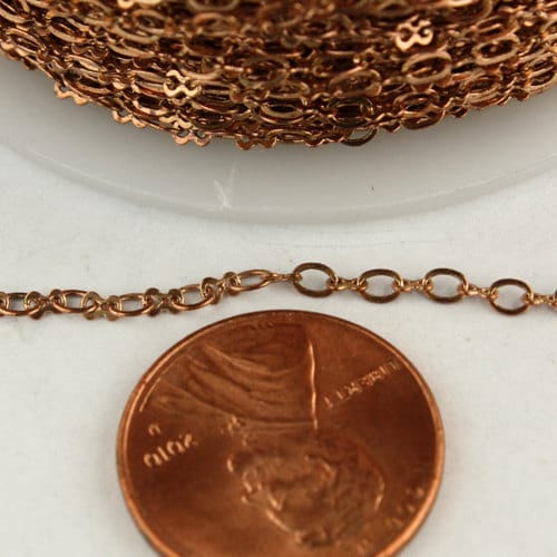 10 ft spool of Bright Copper finished Brass Flat Soldered Cable Chain 3.4x2.9mm - 3429F-BC