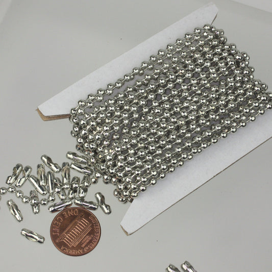 10 ft spool of Rhodium plated BIG ball chain - 3.2mm with 5 connector(Crimp) - 32BALL