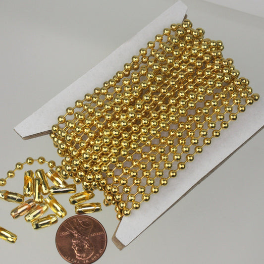 10 ft spool of Gold plated BIG ball chain - 3.2mm with 5 connector(Insert) - 32BALL