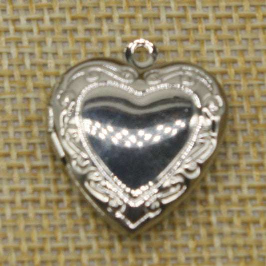 Rhodium Plated Heart Filigree Locket Pendant Charm - 20mm x 20mm - Brass Locket Pendant Charm - Ship from California USA - A3