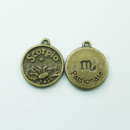 Zodiac Charm, Message Charm - Antique Brass - 28mm 3mm thickness 2.5mm Hole - Scorpio - October 23 - November 21