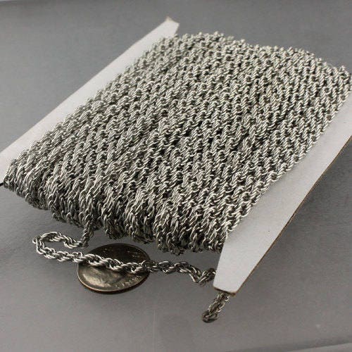 100 feet of Rhodium Finished Fashion Rope Chain - 3.9x3.0mm Link - Chain Thickness 2.7mm