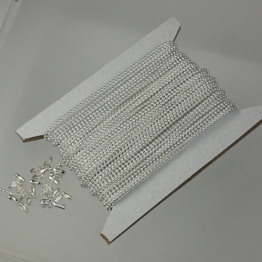 100 Feet Sterling Silver Plated Chain Bulk - 2.4mm Ball Chain - ROUND BALL chain - w/ FREE 100pcs Connectors (Insert) - 24BALL