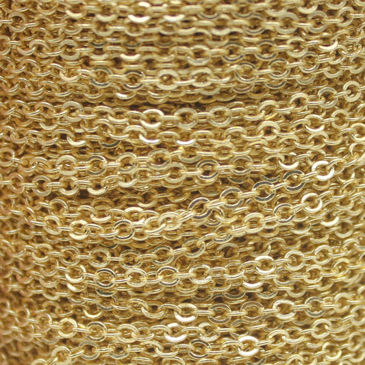 100 Ft Non Tarnish Flat Cable Chain Bulk - Champagne Gold Flat Cable Chain - 3.4x2.8mm SOLDERED Link - Anti Tarnish Free Resistant - AT3428F