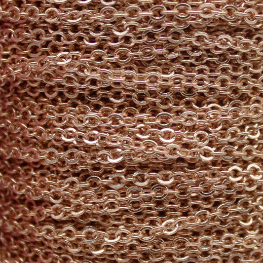 100 Ft Non Tarnish Flat Cable Chain Bulk - Pink Copper Plated Flat Cable Chain - 3.4x2.8mm SOLDERED Link - Anti Tarnish Free - AT3428F