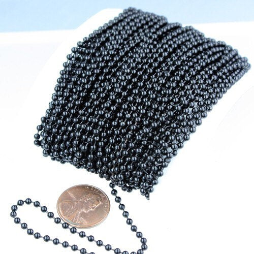 100 ft. spool of Black finished Ball chain - 2.4mm ball size with 10 pcs of connector (crimp-black)