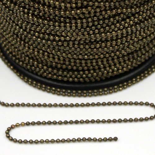 100 ft. spool of Antique Brass finished ROUND ball chain - 1.5mm ball size with free 100 pcs of connector(insert) - 15BALL
