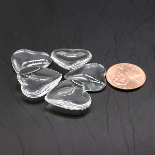 100 HEART Glass Cabochons - 20mm app. 25/32 inch - 4.5mm thickness - Domed Magnifying Clear Glass Cabochon, Photo Jewelry