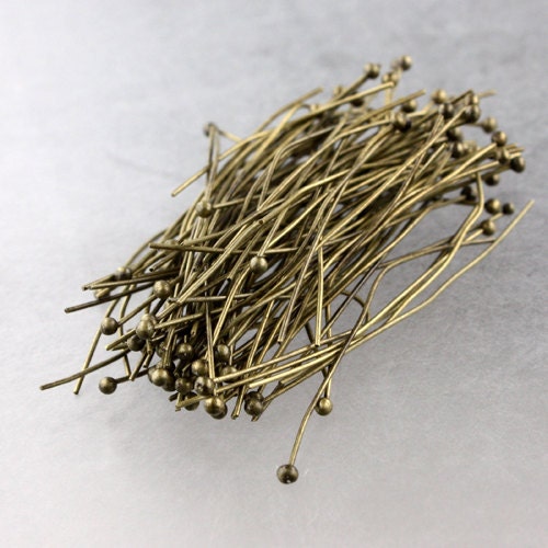 100 pcs Antique Brass Ball headpins Bronze - 2 inch (50mm), 22 Gauge 22G 1.8mm Ball - from California USA