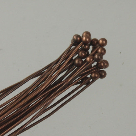 100 pcs Antique Copper Ball headpins - 2 inch (50mm), 22 Gauge 22G 1.8mm Ball - from California USA