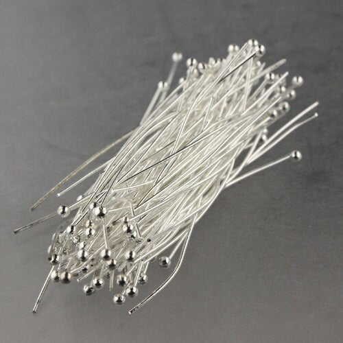 100 Sterling Silver Plated Ball headpins Head Pins - 2 inches (50mm), 22 Gauge 22G 2.0mm Half Hard Body