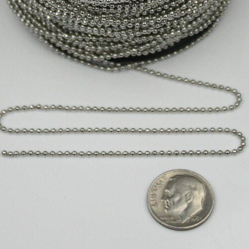 12 ft. spool of Silver Plated ROUND ball chain - 2.4mm ball size - with FREE 10pcs Connectors (Crimp) - 24BALL