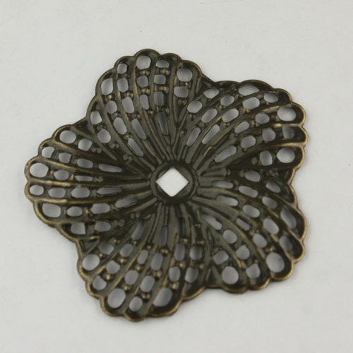 12 pcs of Antiqued Brass finished Hibiscus Flower filigree focal L:ink - 34mm
