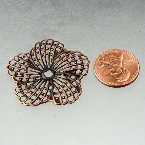 12 pcs of Antiqued Copper finished Hibiscus Flower filigree focal L:ink - 34mm