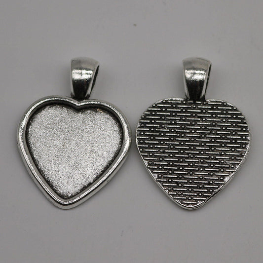 20 Pcs of HEART Antique Silver Bezel - for 20mm HEART Glass Magnifying Domes Cabochon - 33mmx24mm - Pendant Blank Bezel . Photo Jewelry