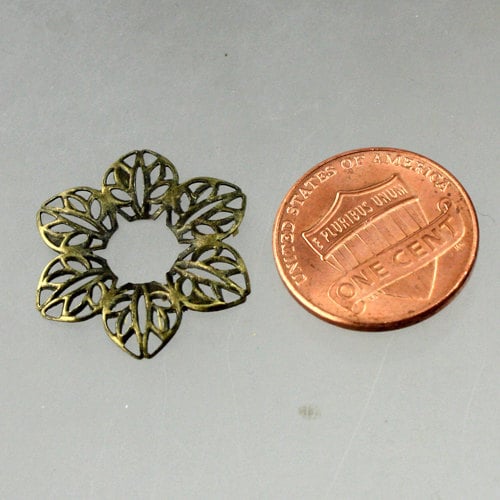 20 pcs of Antiqued Brass finished 6 Leaf Flower filigree focal L:ink - 23mm