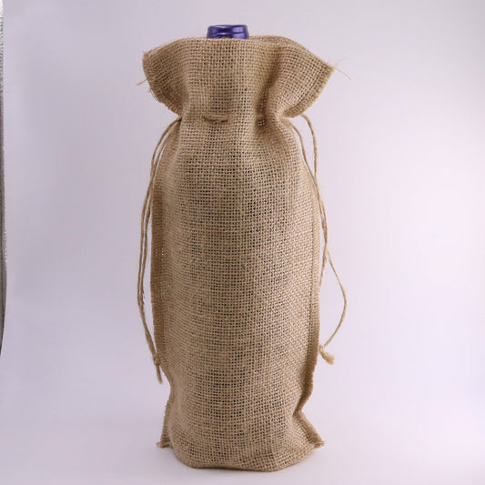 3 pcs of Burlap Wine Bag - 14" x 5" (35cm x 14cm) Natural Jute Burlap Bags - HEMP Bags Jute Bag - Jute Drawstring for Showers Weddings