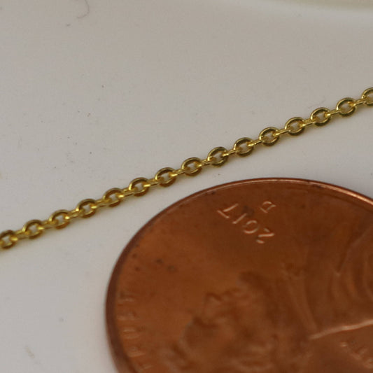 3 Ft. Non Tarnish Flat Cable Chain - 18K Gold Micro Flat Chain - 1.5x1.2mm SOLDER- Anti Tarnish Free Resistant Cable - AT1512F