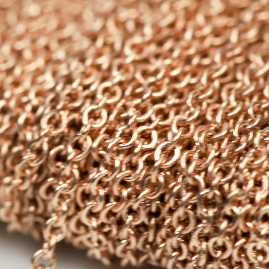 3 Ft. Non Tarnish Soldered Cable Chain - Pink Copper Plated Plain Cable Chain - 2.0x1.4mm SOLDER - Soldered Link - AT2014S