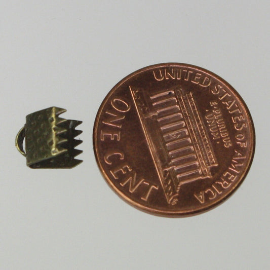 30 pcs Antique Brass Plated for 6mm ribbon - 6x7mm Ribbon Clamps Connectors Clips End for Leather Charm Braid - Ship from CA USA