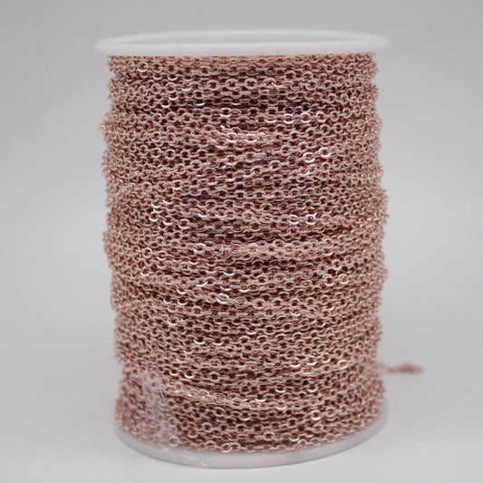 300 Ft Non Tarnish Flat Cable Chain Bulk - Pink Copper Plated Flat Cable Chain - 3.4x2.8mm SOLDERED Link - Anti Tarnish Free - AT3428F