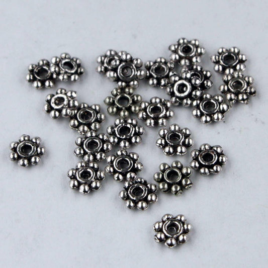 300 pcs - Antique Silver Finished Daisy Flower Spacer Beads - 4mm