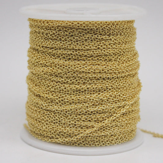 32 feet spool of Raw Brass (Copper Color) (No Plated Virgin) Copper SOLDERED Round Sturdy Diamond Cut Curb Chain - 2.3mm Solder link - 2.3F
