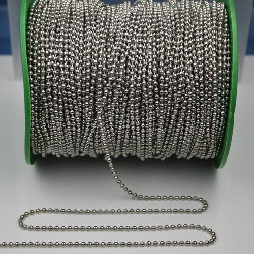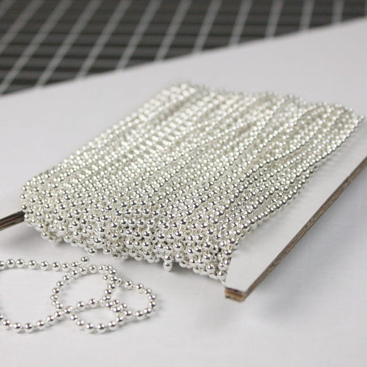 32 ft. spool of Silver Plated ROUND ball chain - 2.4mm ball size - with FREE 50pcs Connectors (Crimp) - 24BALL