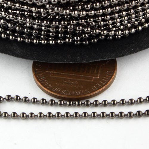 32ft spool of Gunmetal plated ball chain - 1.5mm with 10 pcs of Connectors (crimp) - 15BALL