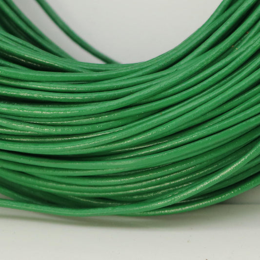 5 feet Green Leather Cord - 2mm Genuine Leather Round Cord (00) - USA Seller