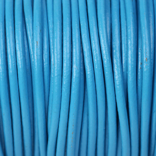 5 feet Ocean Blue Leather Cord - 2mm Genuine Leather Round Cord (13) - USA Seller